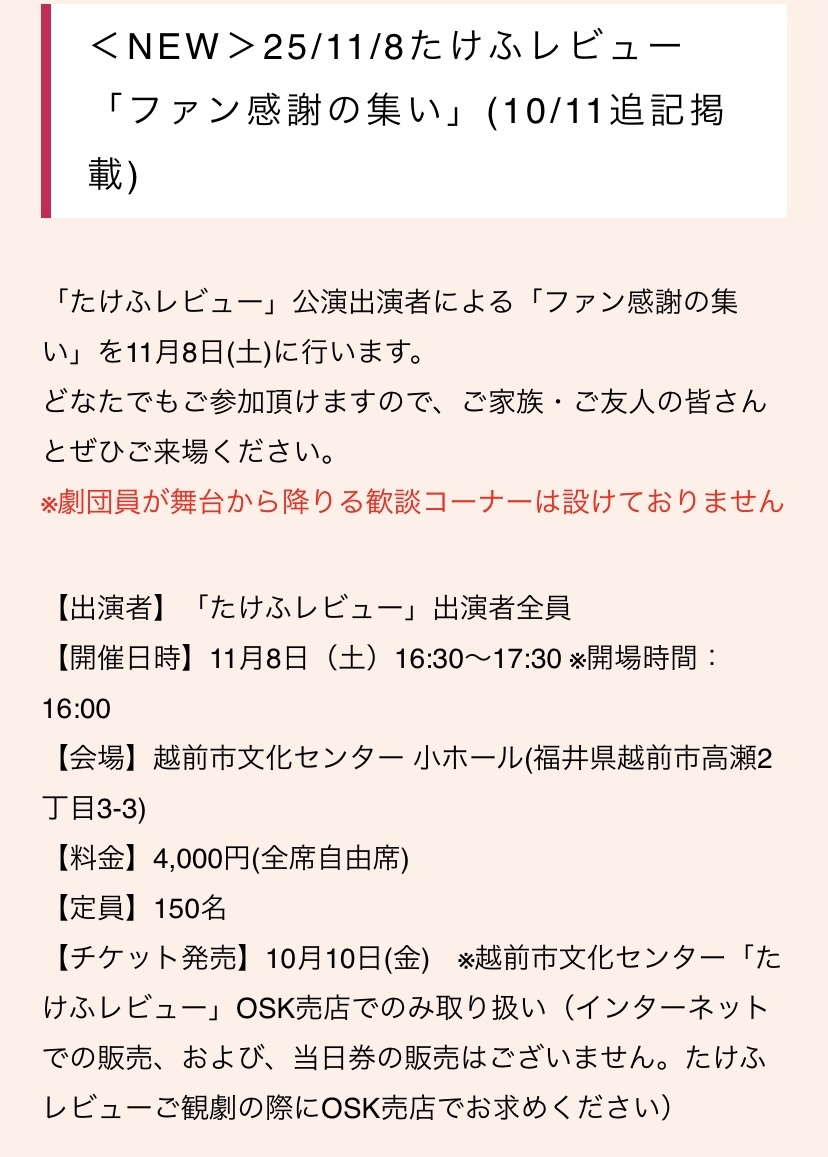 🌸11月8日(土)OSKたけふレビュー「ファン感謝の集い」🌸